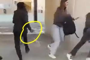 These are the horrific scenes at Saint-Jean-Baptiste de La Salle school in Nîmes in the south of France. A student is seen chasing another who was stabbed 3 times in the back.