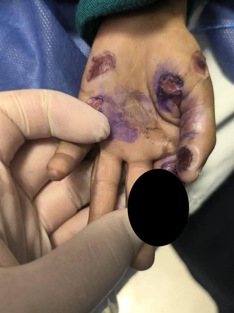 کارکنان بیمارستان از همان ابتدا آثار جراحت، سوختگی، کبودی و ضرب و شتم بر بدن او را مشاهده کردند اما خانواده این کودک در پاسخ به پرسشهای آنها مدعی شده بودند که او از «بالای درخت» افتاده است.