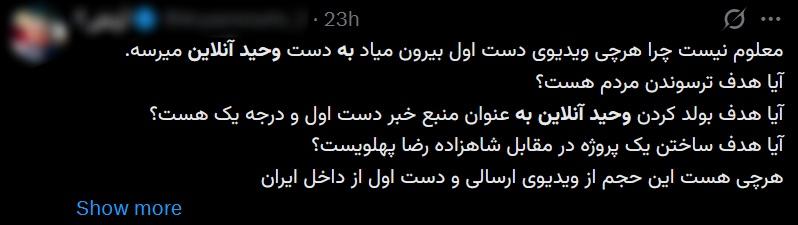 حسابهایی که با طرح ادعاهای مشابه و تکراری، مدعی شدهاند این منبع خبری مستقل با «عناصر درون حاکمیت» همکاری دارد. محور اصلی این حملات، زیر سؤال بردن انتشار ویدیوهای اختصاصی از داخل ایران و القای این گزاره است که دسترسی به چنین محتوایی تنها از مسیر ارتباط با نهادهای حکومتی ممکن است؛ ادعایی که بدون ارائه هیچ سند یا شاهد معتبری مطرح شده و بیش از آنکه نقد رسانهای باشد، شباهت به عملیات تخریبی دارد.