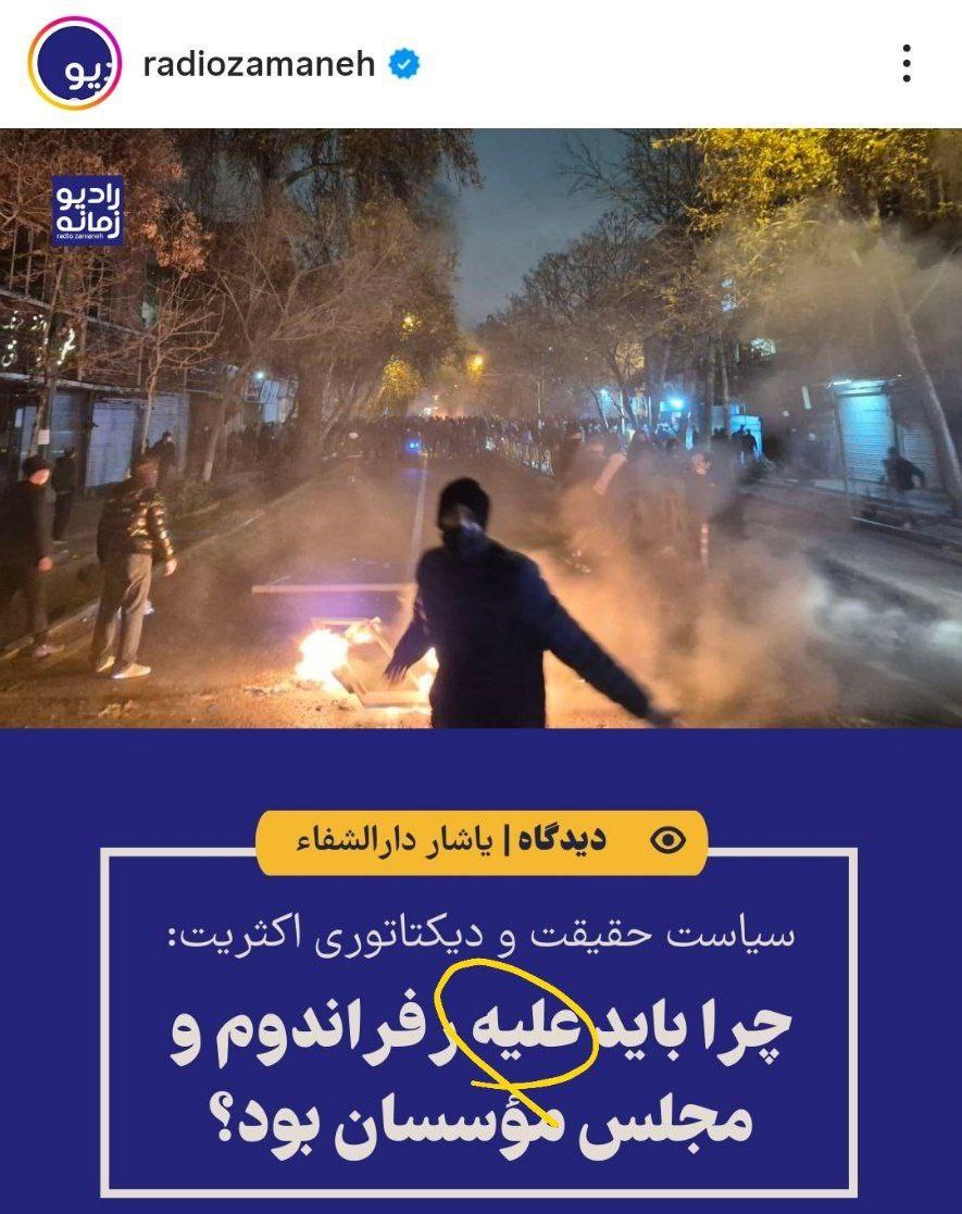 رادیو زمانه: چرا باید علیه رفراندوم بود؟! نفهمیدیم بالاخره "از دموکراسی بگیم" یا "نگیم"؟ الان دموکراسی بده، چون چپ بازندهست؟ بذاریم وقتی از دموکراسی بگیم که چپ شانس برنده شدن داره؟