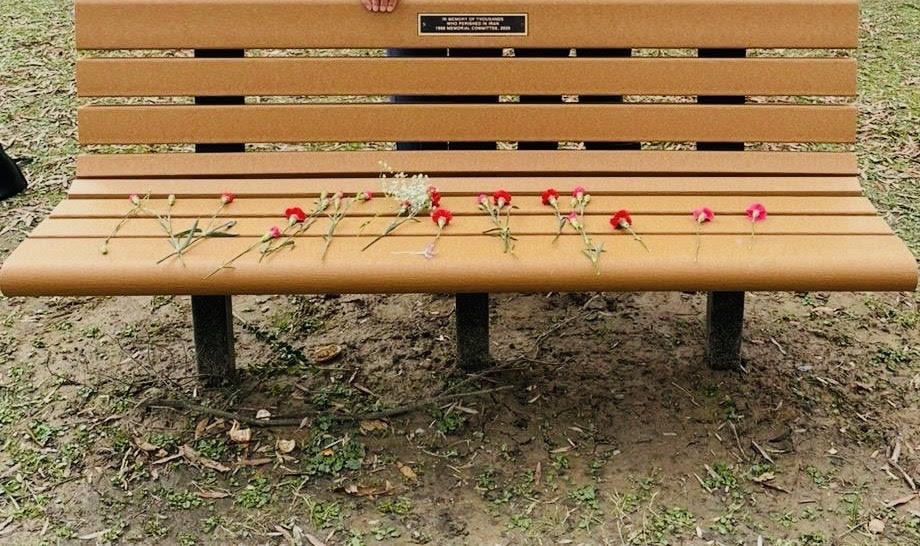 و در آینهی رنج و رزمِ پرخون و سوگ امروز در کنار این نیمکت سرودِ آزادی بخوانیم؛ نیمکتی که رَدِ رنج و رزمِ پرخونِ زندانیان را در بَندبندِ خود دارد.