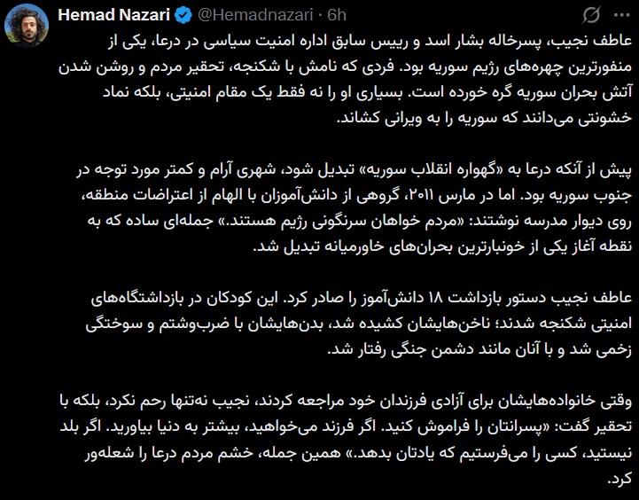 Najeeb, who headed the Criminal Security Directorate in the southern city of Daraa at the outset of the Syrian... pic.twitter.com/ocJ5Q4BMpS