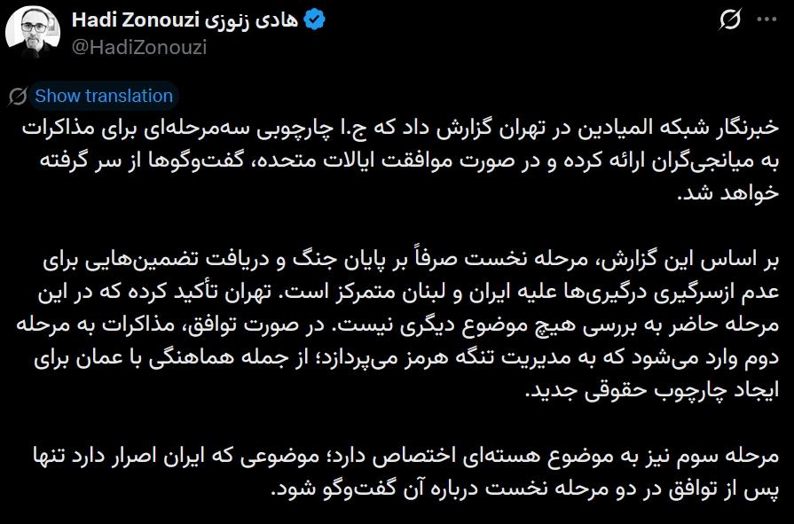 - مذاکرات هستهای تنها در مرحلهای بعد، پس از بازگشایی تنگه و لغو محاصره آغاز خواهد شد.