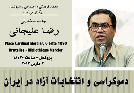 بروکسل: سخنرانی رضا عليجانی با عنوان دمکراسی و انتخابات آزاد در ايران، دوم مارس